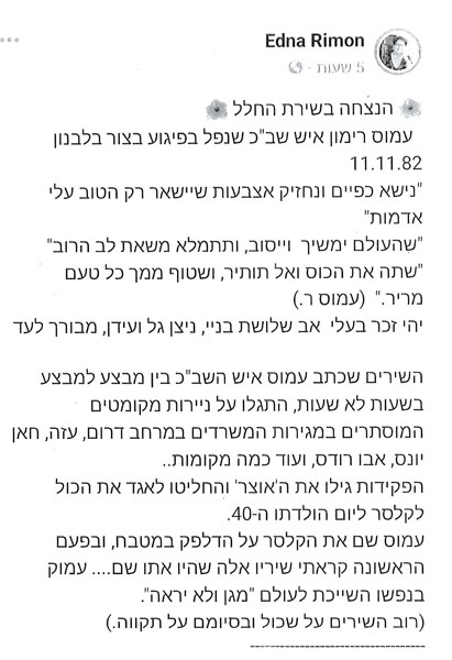 פוסט לזכרו מאת אלמנתו עדנה - 11.11.23