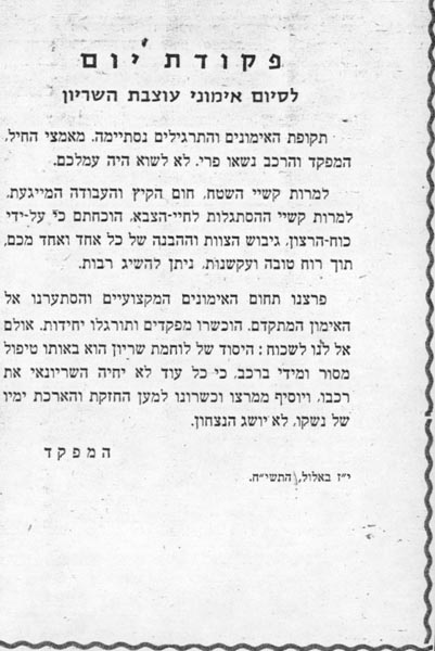 פקודת יום לסיום אימוני העוצבה