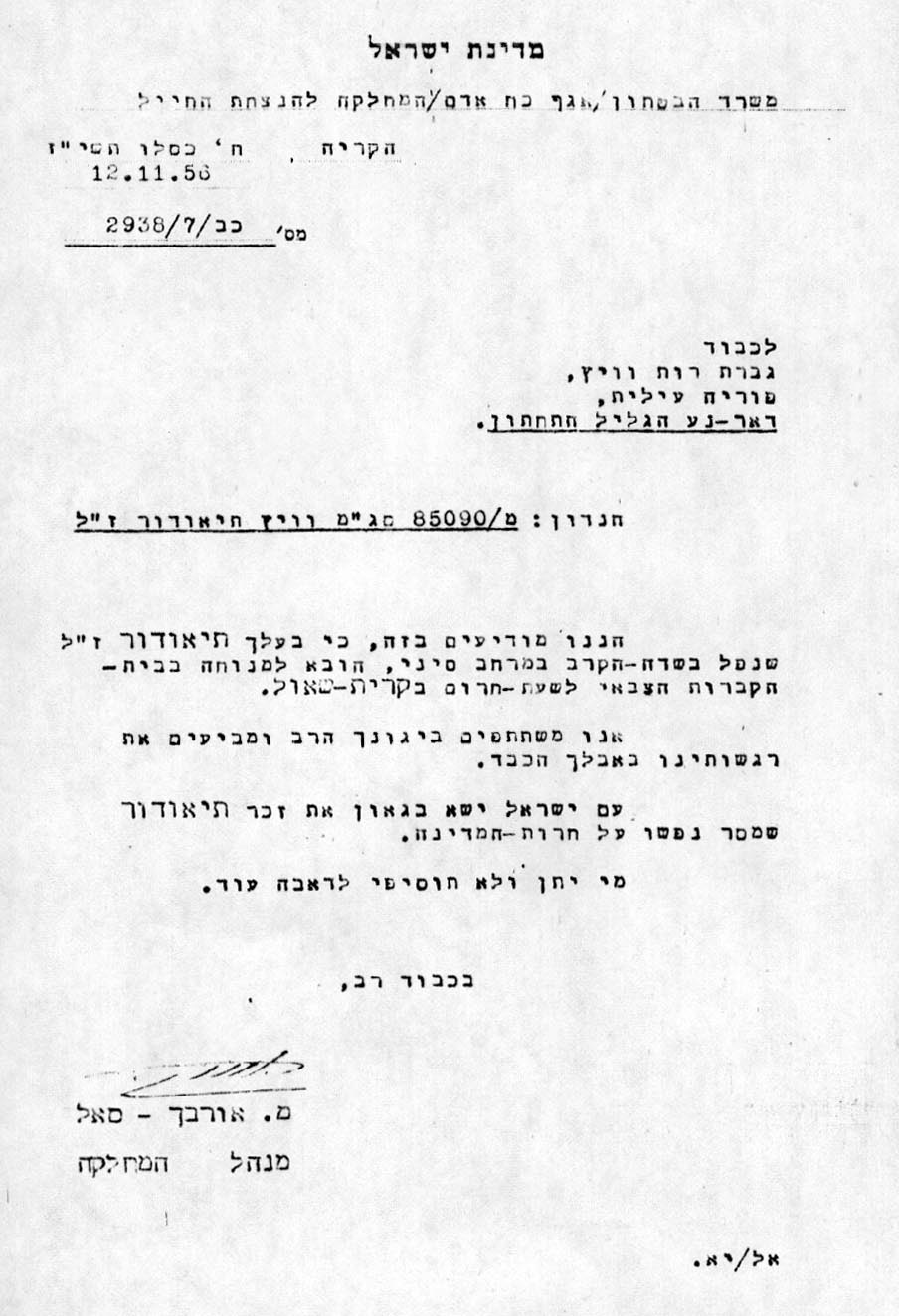 מכתב לאשתו, על פרטי קבורתו